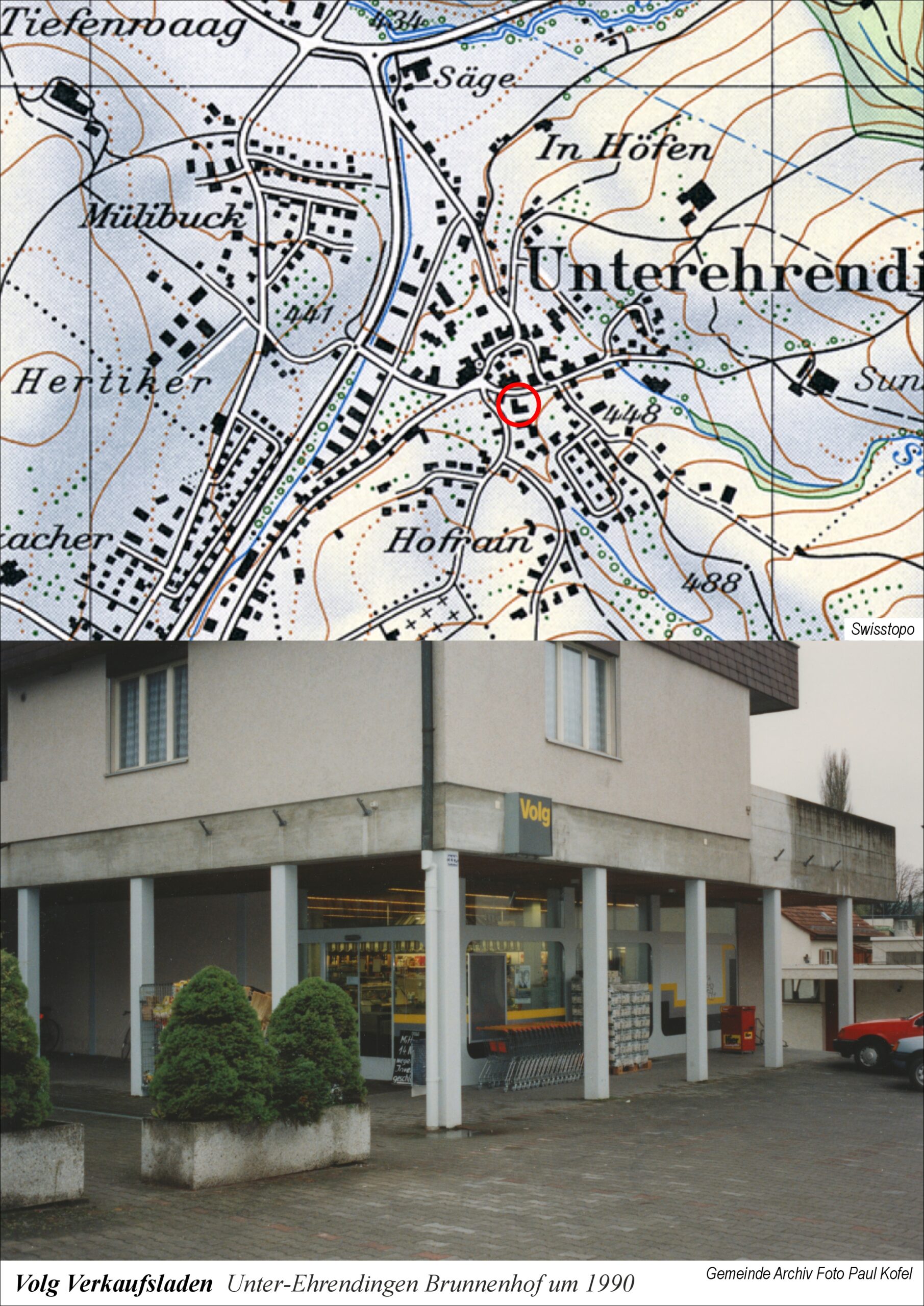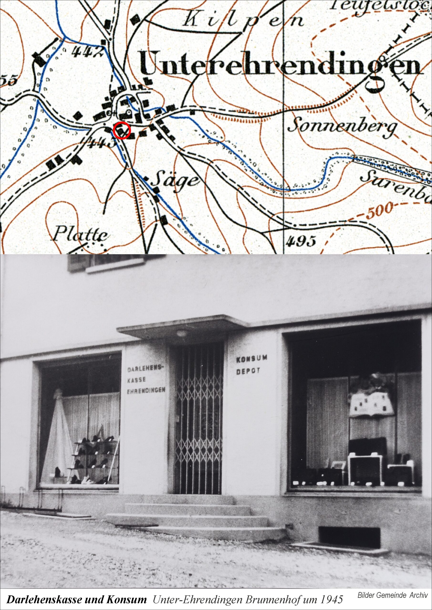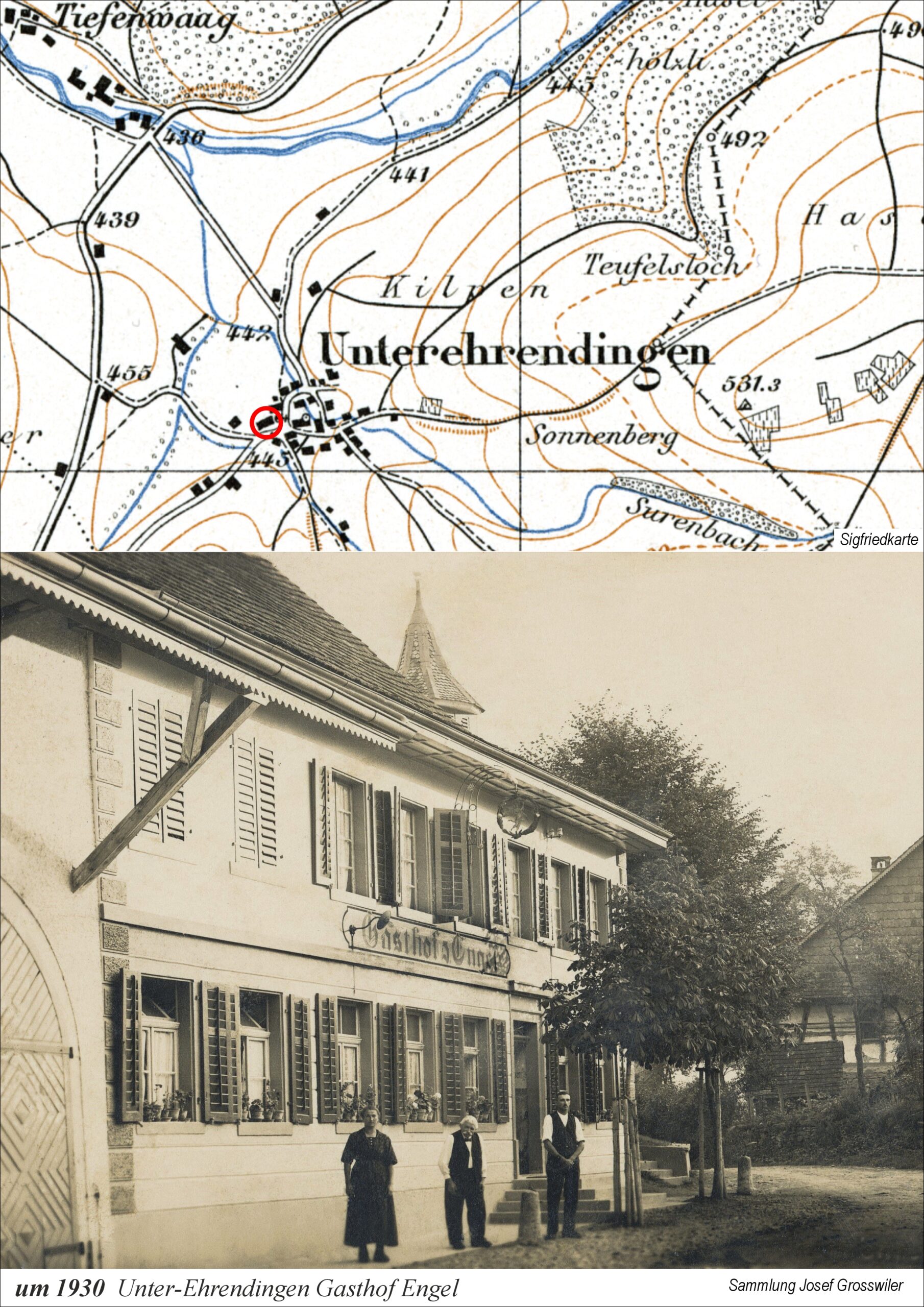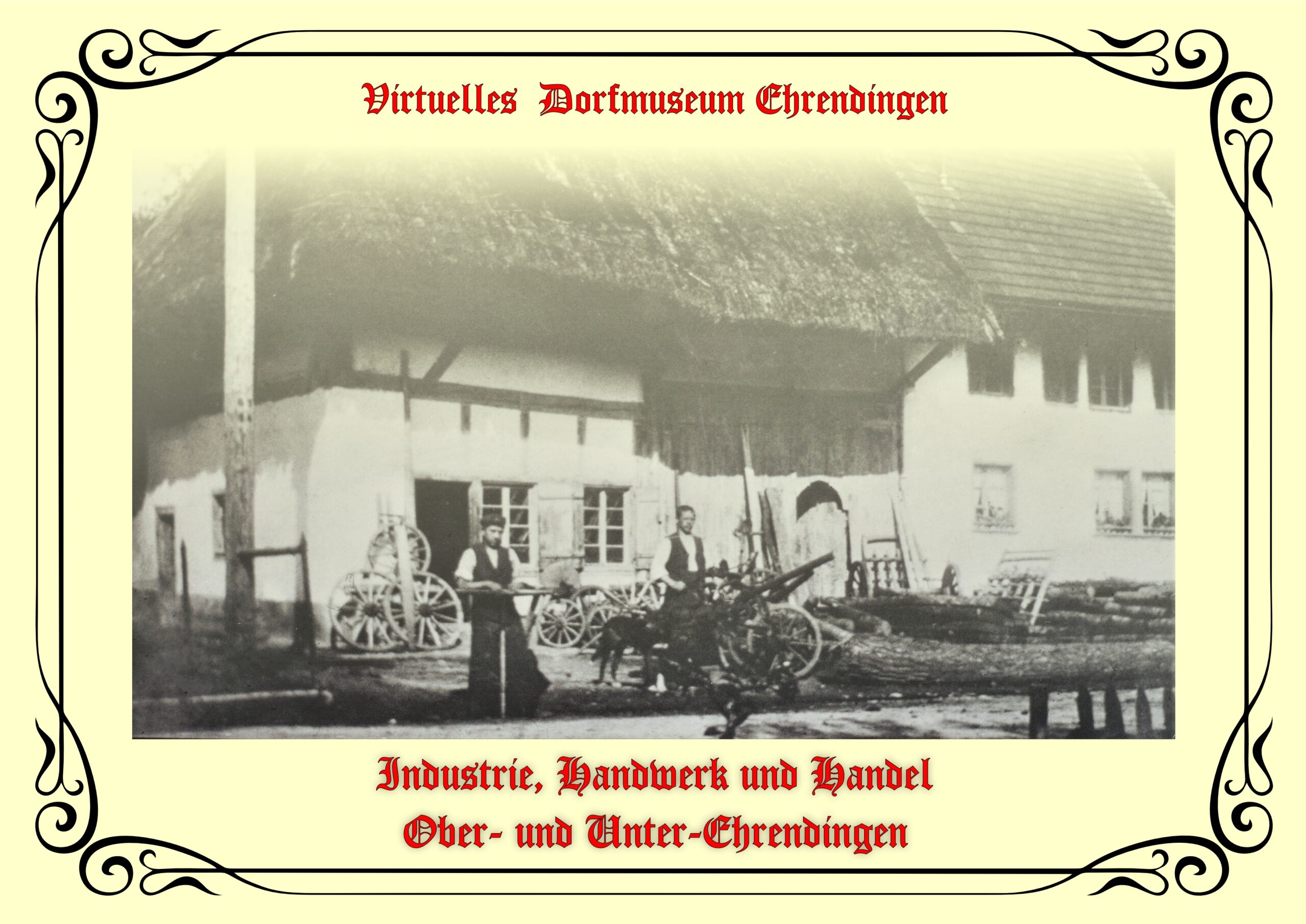 Das Gewerbe in Ehrendingen hat sich stark gewandelt. Verschwunden sind zum Beispiel die Ziegelbrennerei [1], die drei Gipsmühlen [3] [4] [5], die Sattlerei, die Wagnerei, die Dorfschmiede, die Sägerei [6] und die grosse Zementfabrik [2]. Dafür ist vieles Neues erstanden. Ebenso gab es Änderungen bei den Handelsgeschäften. Wir hatten mal eine Milchhütte [7], ein Salzhüsli [8], „Karlis Lädeli“, den „Willi Lädeli“, ein Konsumgeschäft im Oberdorf und ein Konsumdepot im Unterdorf [9]. Auf einigen Fotos der Ausstellung können wir alteingesessene Geschäfte wiedererkennen, die es heute noch gibt, zum Beispiel der Darlehenskassenverein (heute Raiffeisenbank), die AVIA-Tankstelle und die Metzgerei im Oberdorf. Die älteren Ehrendinger mögen sich noch daran erinnern, wieviele Wirtschaften wir einmal hatten. Zwar gibt es Frohsinn, Eintracht, Hirschen und Höhtal nicht mehr, aber das kulinarische Angebot von Ehrendingen ist trotzdem auch heute noch sehr gut.