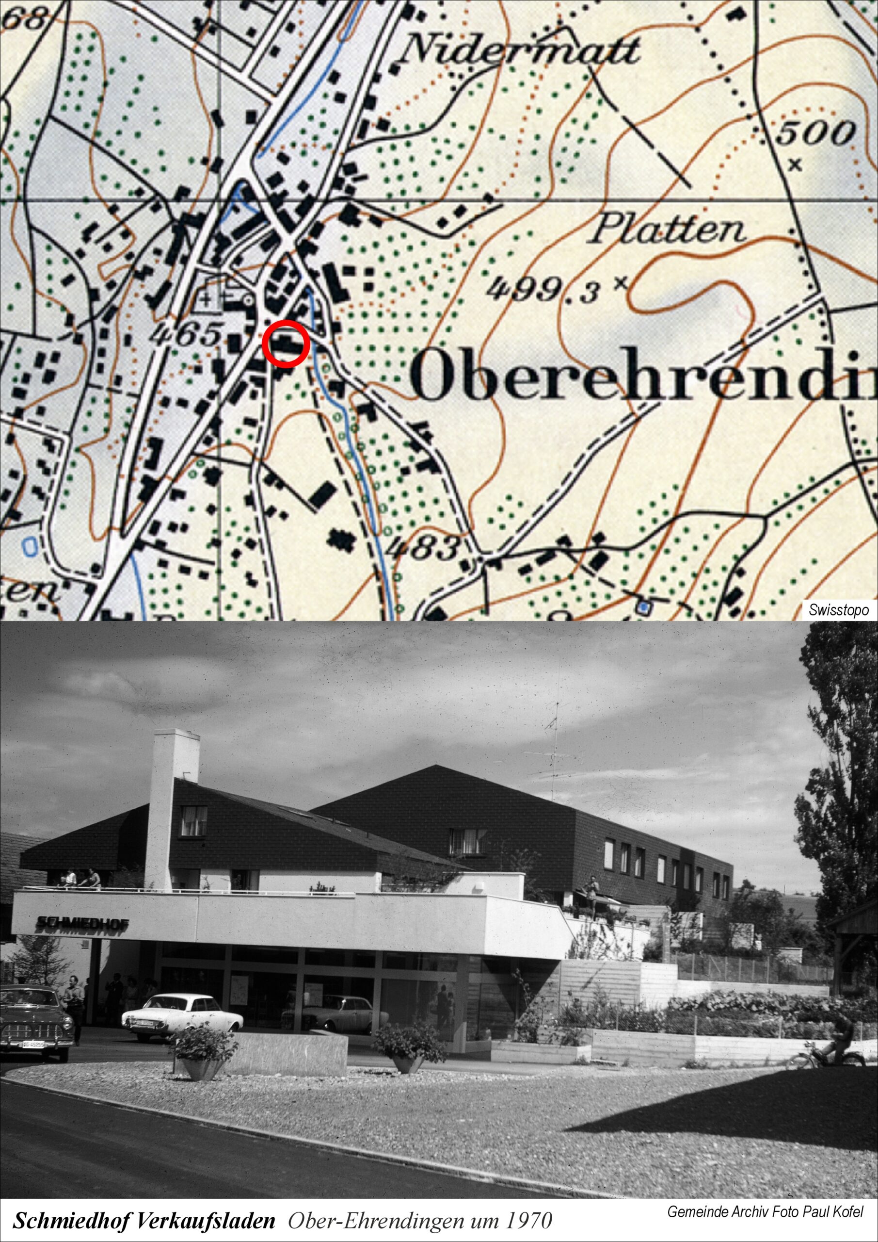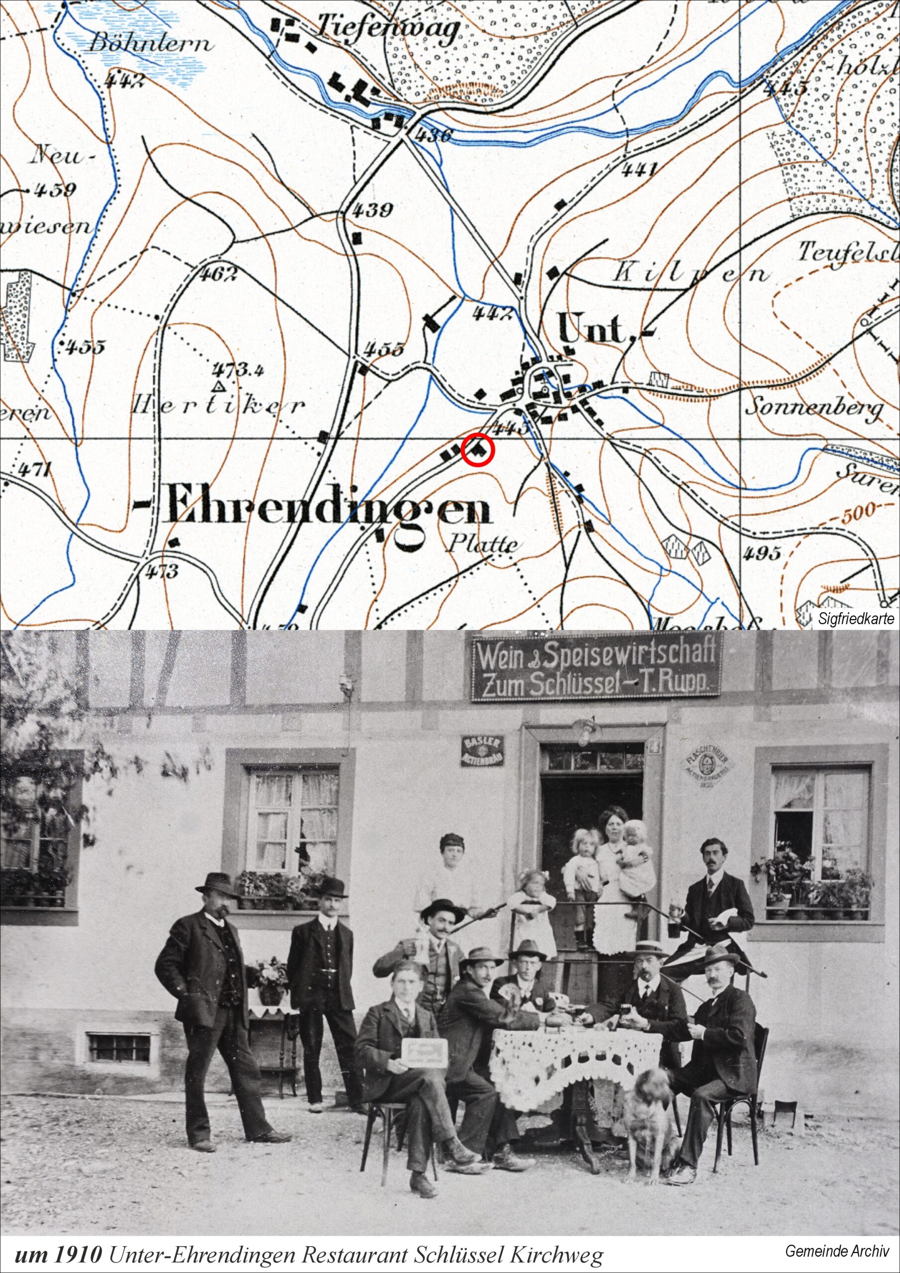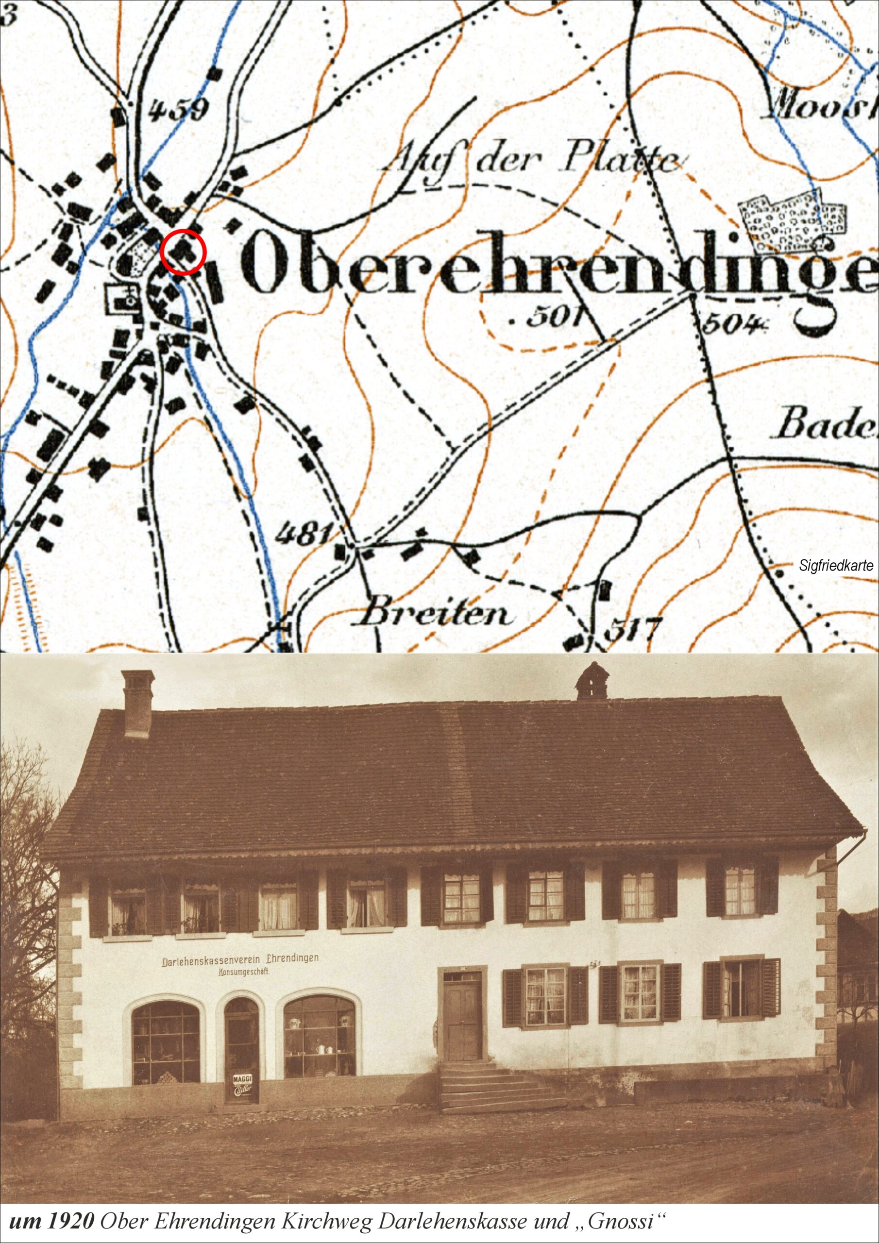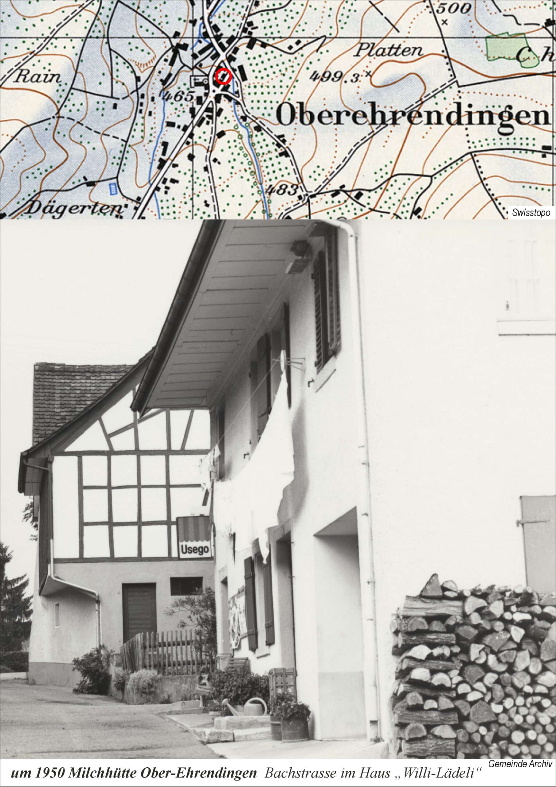 Das Gewerbe in Ehrendingen hat sich stark gewandelt. Verschwunden sind zum Beispiel die Ziegelbrennerei [1], die drei Gipsmühlen [3] [4] [5], die Sattlerei, die Wagnerei, die Dorfschmiede, die Sägerei [6] und die grosse Zementfabrik [2]. Dafür ist vieles Neues erstanden. Ebenso gab es Änderungen bei den Handelsgeschäften. Wir hatten mal eine Milchhütte [7], ein Salzhüsli [8], „Karlis Lädeli“, den „Willi Lädeli“, ein Konsumgeschäft im Oberdorf und ein Konsumdepot im Unterdorf [9]. Auf einigen Fotos der Ausstellung können wir alteingesessene Geschäfte wiedererkennen, die es heute noch gibt, zum Beispiel der Darlehenskassenverein (heute Raiffeisenbank), die AVIA-Tankstelle und die Metzgerei im Oberdorf. Die älteren Ehrendinger mögen sich noch daran erinnern, wieviele Wirtschaften wir einmal hatten. Zwar gibt es Frohsinn, Eintracht, Hirschen und Höhtal nicht mehr, aber das kulinarische Angebot von Ehrendingen ist trotzdem auch heute noch sehr gut.