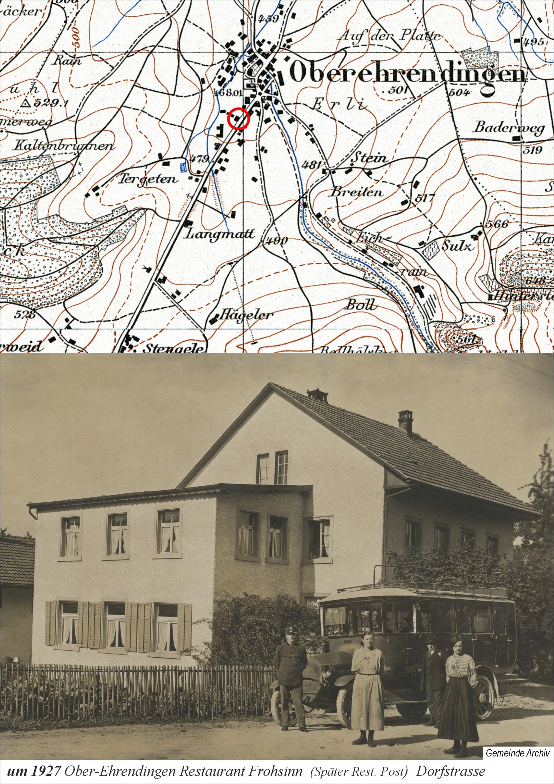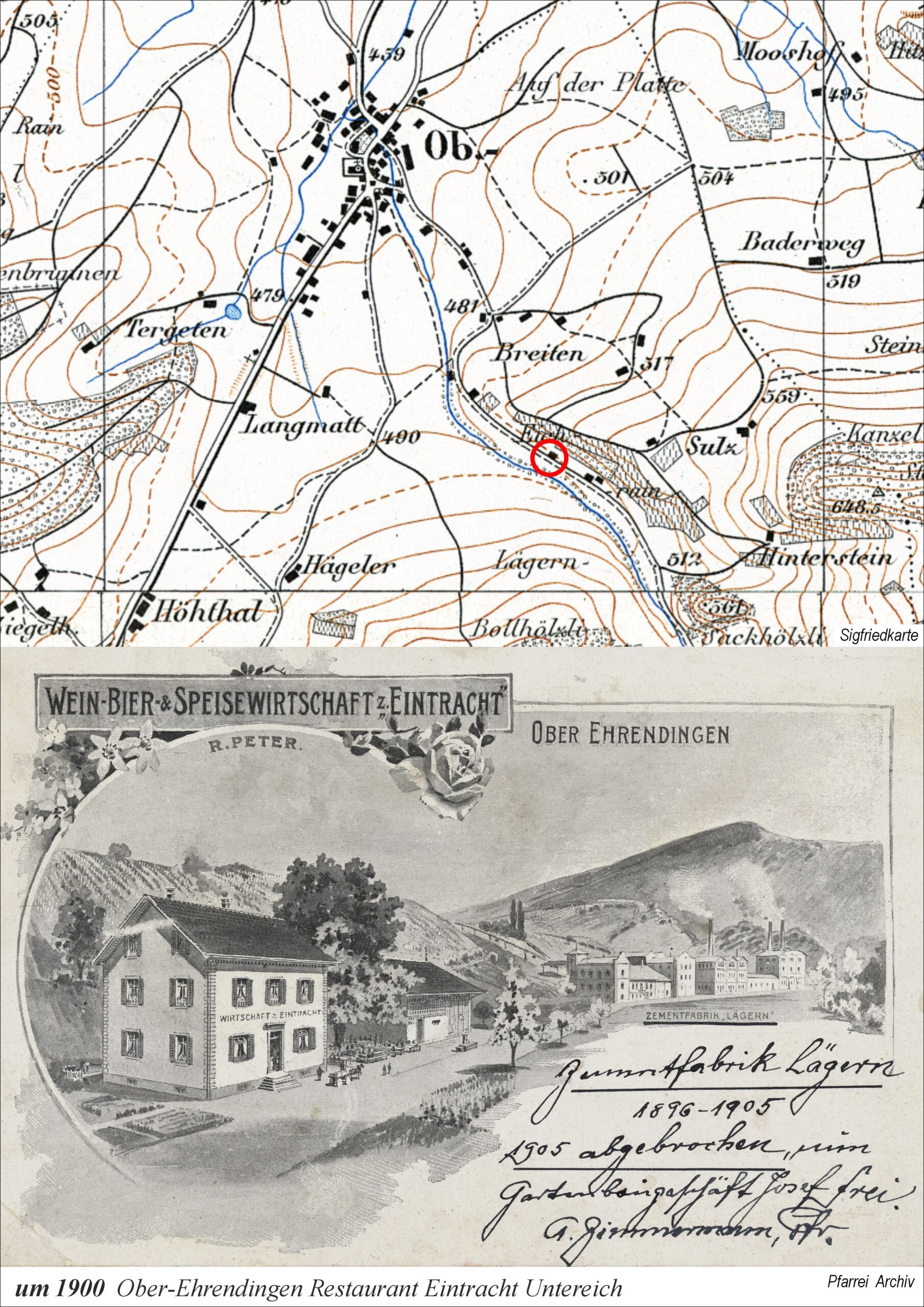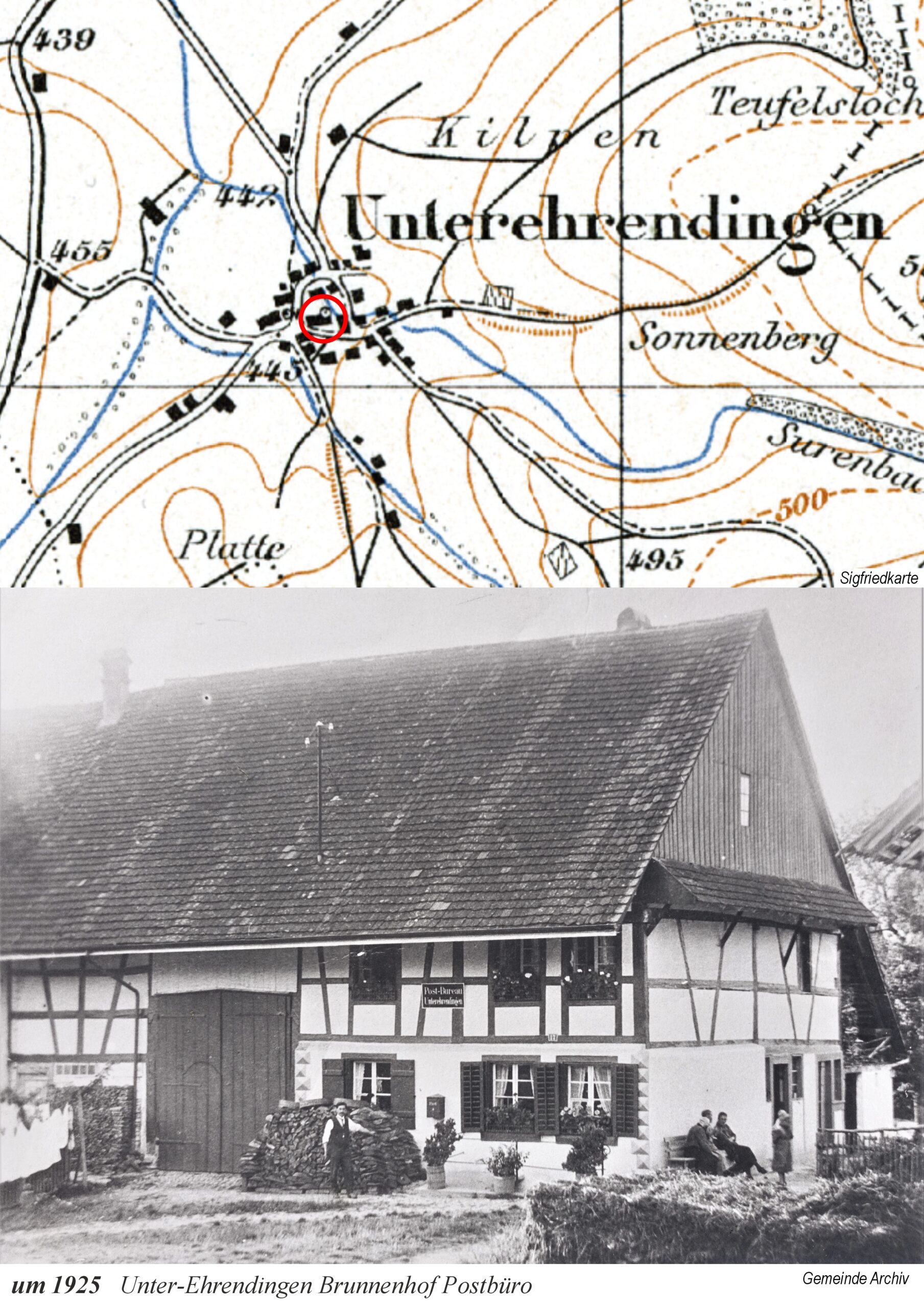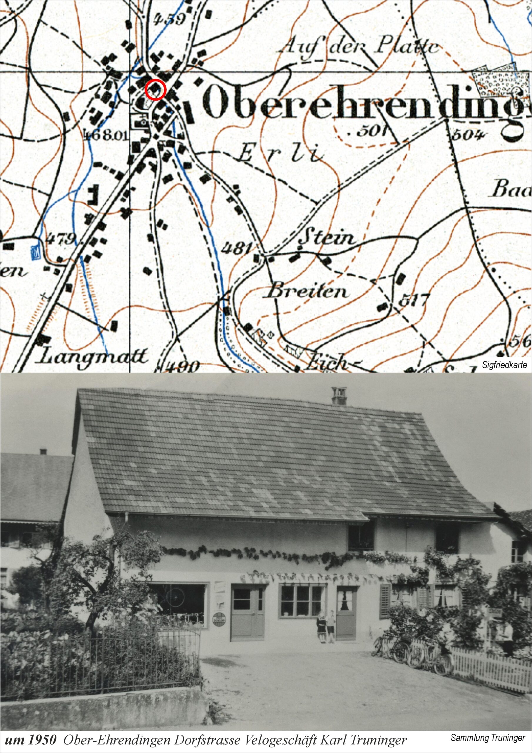 Das Gewerbe in Ehrendingen hat sich stark gewandelt. Verschwunden sind zum Beispiel die Ziegelbrennerei [1], die drei Gipsmühlen [3] [4] [5], die Sattlerei, die Wagnerei, die Dorfschmiede, die Sägerei [6] und die grosse Zementfabrik [2]. Dafür ist vieles Neues erstanden. Ebenso gab es Änderungen bei den Handelsgeschäften. Wir hatten mal eine Milchhütte [7], ein Salzhüsli [8], „Karlis Lädeli“, den „Willi Lädeli“, ein Konsumgeschäft im Oberdorf und ein Konsumdepot im Unterdorf [9]. Auf einigen Fotos der Ausstellung können wir alteingesessene Geschäfte wiedererkennen, die es heute noch gibt, zum Beispiel der Darlehenskassenverein (heute Raiffeisenbank), die AVIA-Tankstelle und die Metzgerei im Oberdorf. Die älteren Ehrendinger mögen sich noch daran erinnern, wieviele Wirtschaften wir einmal hatten. Zwar gibt es Frohsinn, Eintracht, Hirschen und Höhtal nicht mehr, aber das kulinarische Angebot von Ehrendingen ist trotzdem auch heute noch sehr gut.